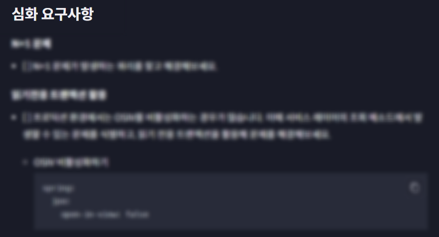 ์ด ์ ๋๋ก ์๊ตฌ์ฌํญ์ด ์์ธํ ์ฃผ์ด์ง๊ณ , ์์จ์ ์ผ๋ก ์ฐจ๋ณ์ ์ ์ฃผ๊ธฐ ํ๋ค ์ค์ ๋ชฐ๋๋ค.