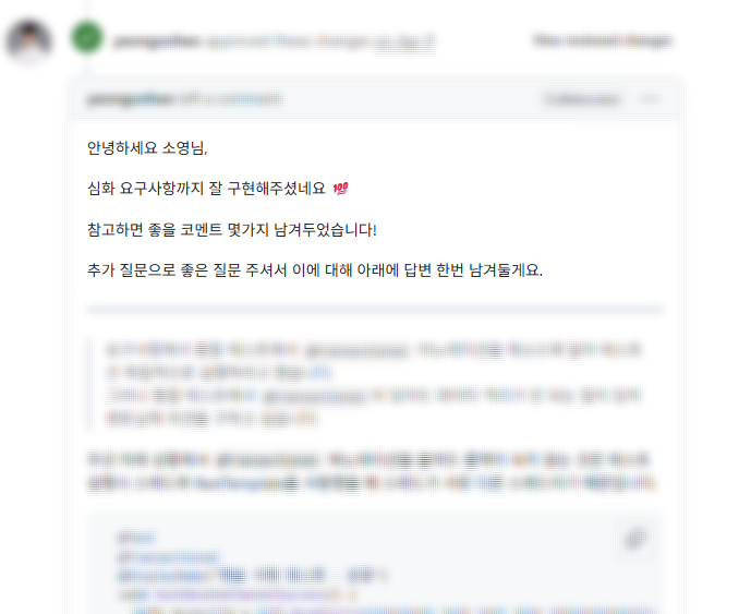 3๋ช ์ ์ฝ๋๊ฐ ํ๋์ PR์ ๋ค ์ฌ๋ผ๊ฐ๊ณ , ๊ทธ๋ ๋ง์นจ ์ฝ๋ ๋ฆฌ๋ทฐ ๋ด๋น์๊ฐ ๋์ฌ์(๐ฅน๐ฅน)