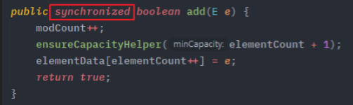 Vector๋ ๋ชจ๋ public ๋ฉ์๋์ `synchronized` ํค์๋๊ฐ ๋ถ์ด ์์ด