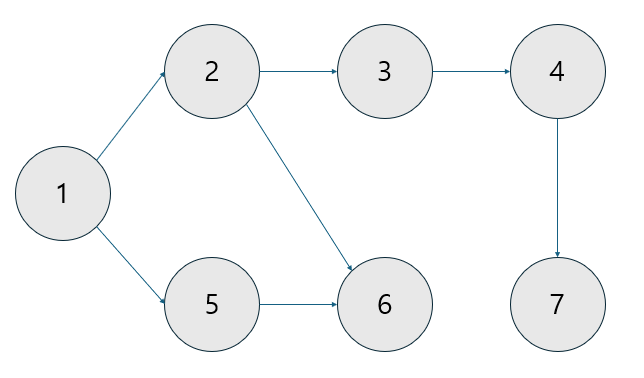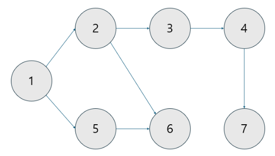 μ λ ¬ κ²°κ³Όλ `1→2 →5 →3 →6 →4 →7`μ λλ€.